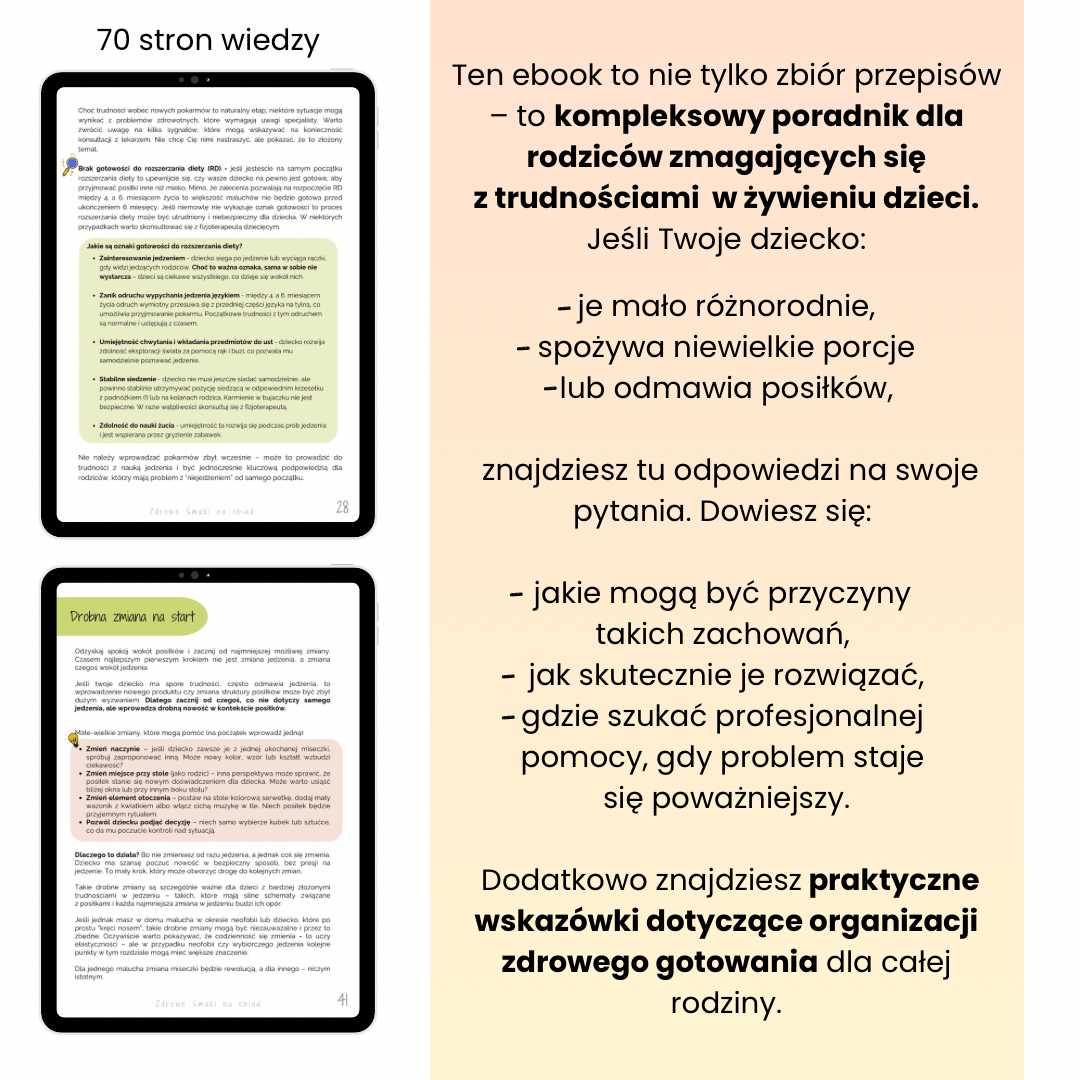 Twoje dziecko „mało” je? W ebooku znajdziesz wskazówki co robić, gdy dziecko nie chce jeść + ponad 30 przepisów na rodzinne obiady i praktyczne porady ułatwiające codzienne gotowanie.
